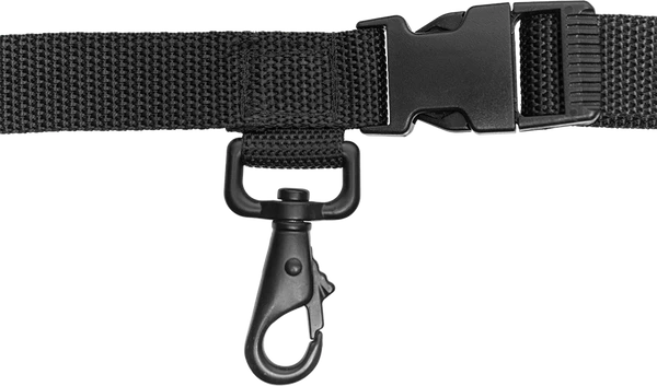 The handler bag attaches to the waist with the use of an adjustable belt. The belt is made from heavy poly nylon and is adjustable. The belt will fit waist measurements from 28-52”. The handler bag can be removed from the belt and the belt used alone with the leash. Stitched into the belt is a black metal spring bolt snap for attaching the bungee leash. The bungee leash is covered with fleece and features a soft looped handle. The bungee leash can be used separately or attached to the belt snap. The leash length unstretched is 36”, leash stretched approx 52″. Made in the USA