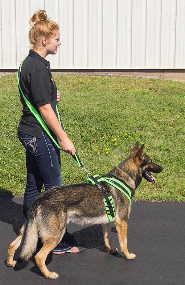 The purpose of the EEWALKER Hands Free Leash is to keep your dog in position while walking or working with you. The EEZWALKER leash is very functional and should be a tool for training every dog. With your dog by your side it learns to adapt to your body movements and your stride. It doesn’t have the option to run here or there. It learns to do what you want it to and can even anticipate what direction you are going to move and move with you.