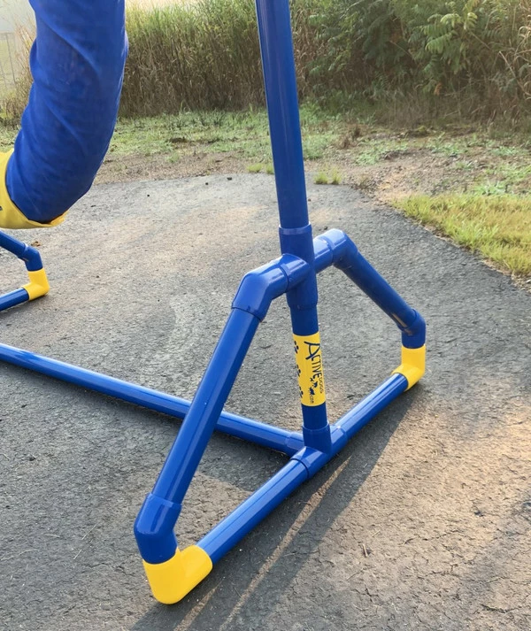 Our Standard Tire Jump is made from the highest-grade colored PVC. It is the most attractive, durable and long-lasting furniture PVC on the market. This Furniture Grade PVC is ultraviolet (UV) and corrosion resistant and infused with modifiers that allow extra load onto the pipe. This Tire Jump frame will not yellow and bend in the outdoor sun light. The fittings are also the same quality grade PVC that have tapered edges for smooth edge transition. There are no sharp corners and the fittings fit snuggly secure. This is a considerably more expensive PVC than what can be purchased at the local hardware store but the beauty, longevity and strength are well worth is.