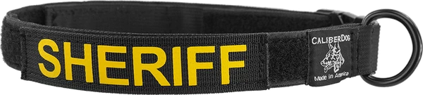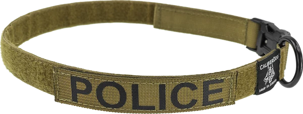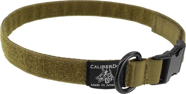 CaliberDog ID collar is designed to carry any of our 1×5″ hook and loop ID panels. This collar can be adjusted to fit a dog’s neck from 16” to 26” in circumference. It has a strong 1″ metal side-release buckle and a 1” welded D-ring. The CaliberDog 1″ ID Collar is made from 1” wide military spec webbing. It comes in two colors, black or coyote.