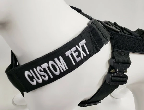 Design your own custom 2×6″ ID patch with up to 15 characters. Made from military-spec webbing with look & loop sewn on. Letting is done with high-quality embroidery. Embroidered here at Activedogs.com on commercial Tajima machines. Choose from black patch or coyote brown patch. Text on coyote brown is black thread and text on black is white thread. Uses hook & loop to attach securely to items, such as vests, collars, bags, ect.