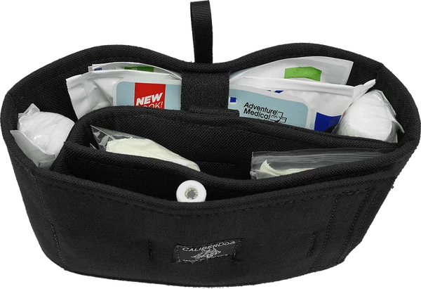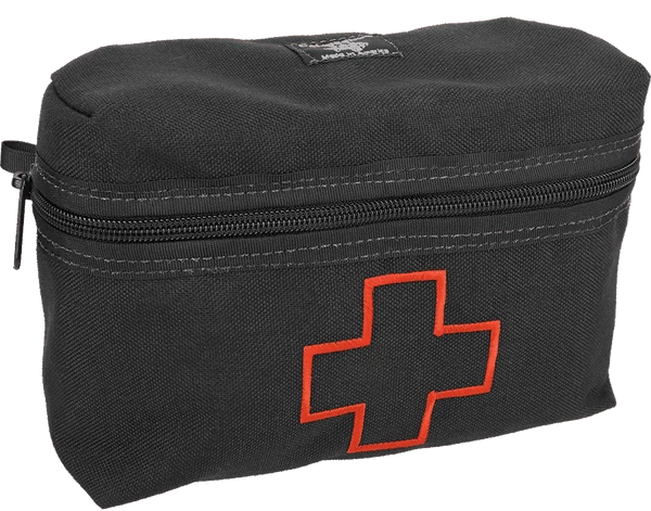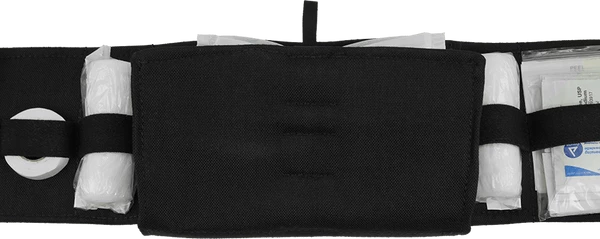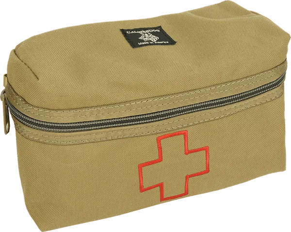 The MOLLE First Aid Field Trauma Kit is designed to be used with the K9 Tactical MOLLE Vest, The outer bag attaches to the vest with two webbed MOLLE sticks, included with the MOLLE First Aid Field Trauma Kit. This first aid kit address two emergency trauma issues of first aid; bleeding and bone breaks. In an emergency situation you can quickly see and access the medical supplies and instruments with this fold open trauma kit insert. The inner piece of this MOLLE K9 First Aid Field Trauma Kit comes out of the bag separately so you can have the supplies at your fingertips. The insert is padded so nothing sharp can poke through the bag insert. It is a trifold padded insert with elastic hold down straps for the supplies. This feature is a safety feature as time is an issue during an emergency and digging in the bag for your supplies takes time. The outer bag has a red embroidered medical cross on the front of it so it will quickly be recognized as the first aid supply bag. The MOLLE K9 First Aid Field Trauma Kit comes with exterior zip top bag, size 6x8x3, and trifold interior bag insert. Supplies included in the kit are Chrome Gut Sutures, Penlight, Tweezers, EMT Scissors, Scalpel, Forceps, Latex Gloves, Tourniquet, Wood Splints, Tape, 2×2 Gauze, 4×4 Gauze, Non-Adherent Pads, 4” Gauze Rolls, Antibacterial Wipes, Povidone Prep Pads, Instant Cold Pack, and Clotting Sponge. USA MADE