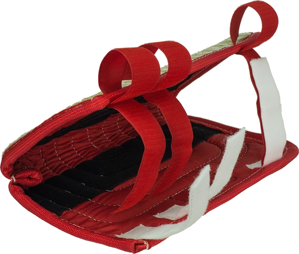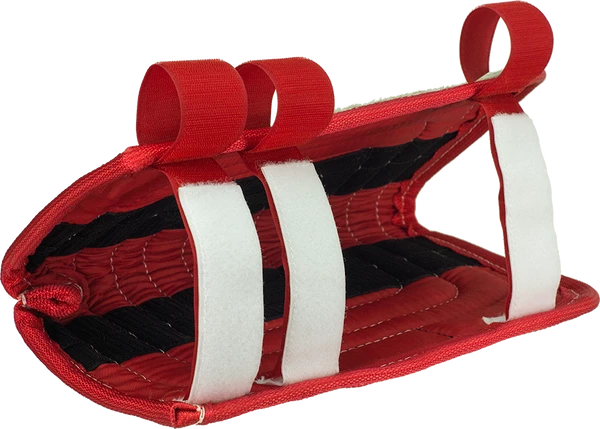 The Short Sleeve Jute Cover is intended for use with the CailberDog Short Sleeve. The Cover features 3 hook and loop closures on top for securing the cover to the sleeve. There is also hook and loop on the cover that attaches to the sleeve. The cover is made from a jute material. The inside is padded for extra protection. The inside color varies.