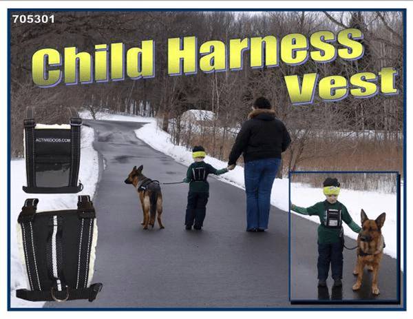 Safe training harness for child & K9 Front /back panels are padded with non-scratching shearling fabric for added comfort