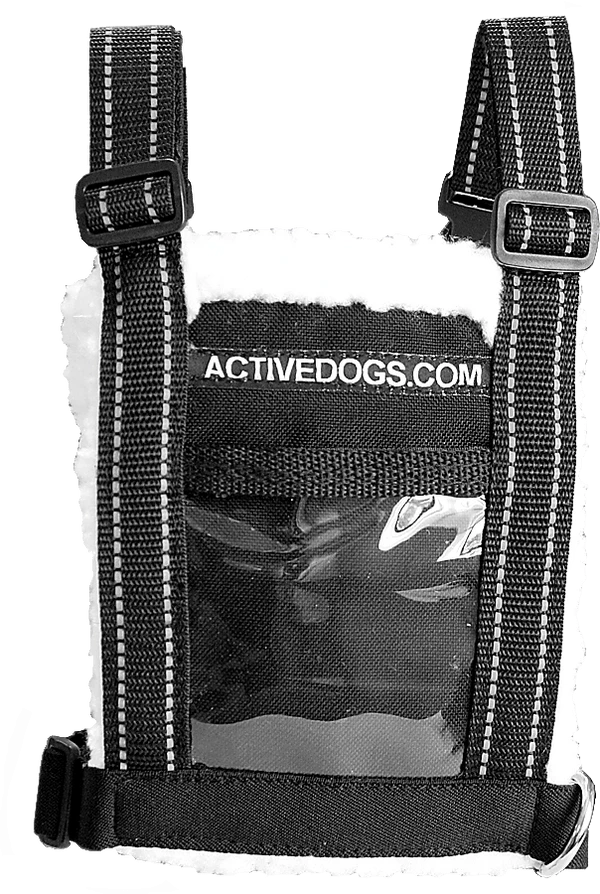 A floating O-ring, for attaching the dog, is on the left side of the harness. The free floating O-ring makes