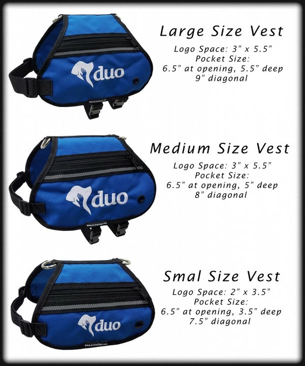 This vest is a great opportunity to display your company’s logo while showing what organization the dog is part of or came from. Everywhere they go people will see your name in beautiful, bright and bold embroidery. Logos are stitched using our strong and richly colored polymer threads and they will last the lifetime of the vest.