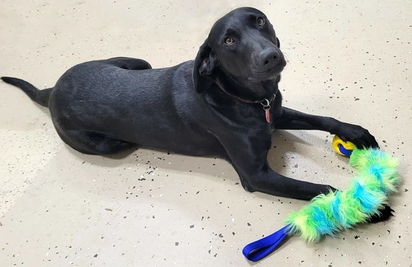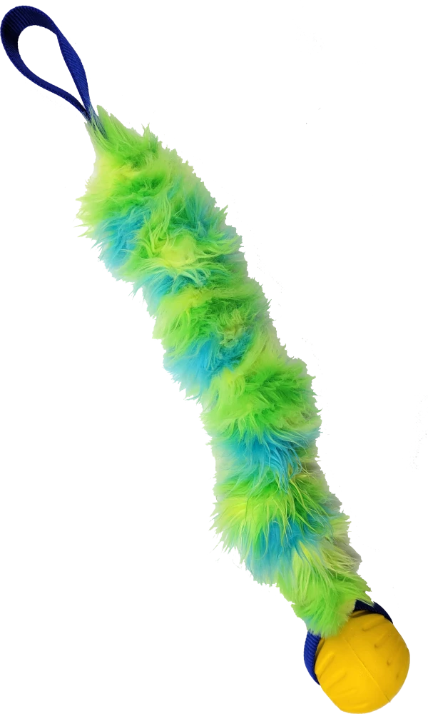 The Activedogs.com Fur Bungee w/Foam Ball Tug is so fun. The dogs just love it and it works well to motivate them to interact with us during training. The yellow foam 2” ball is a favorite of our dogs and the bright color attracts their attention. The plush faux fur stretches with a bungee interior. The handle is solid non stretch construction for good handle control. This plush tug will stretch from 24” to 34”.