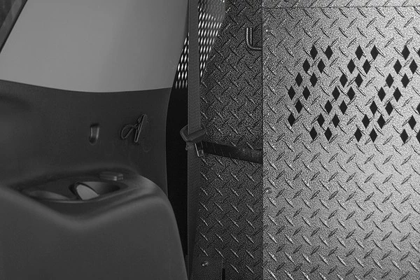 Includes 1/2″ thick solid rubber mat for the K9 area. 2 LED lights are also included, one for the K9 area and one for the prisoner transport.