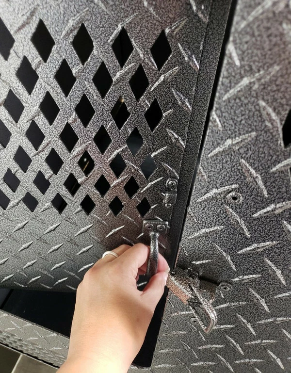 Window guards, lock & handle cover plates are included when you purchase a Police K-9/Passenger Vehicle Insert. These window guards are cut from a single piece of steel and have no seams or welds. CNC machining is used for an exact fit on your vehicle. Durable black powder coat finish. Includes self-drilling screws for easy installation with pre-drilled mounting holes.