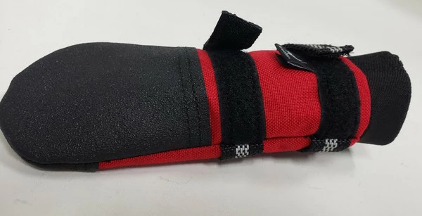 Our Non-Slip Dog boots have many features worthy of your 4 legged companion. These booties are a simple on and off style with an elastic top; which, helps in putting the boots on the dog. There are two reflective adjustable straps that hold the boots securely on your dog’s paws. The boot toe and bottom areas are covered in a PVC Resin coated fabric; This is a non-slip material giving extra grip while walking on slippery surfaces, is water resistant, and provides paw protection.