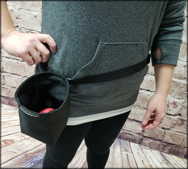 This is a perfect pouch for your tennis balls, XL Kong or reward treats. Reward balls and treats are great motivators to use during dog training but are not always conveniently accessible. This is where this pouch comes in handy. It is made from water repellent durable material. It can easily be fold up and stored when not in use. The pouch is lined giving it a long life use. It comes with an adjustable belt. This belt will fit a waist between 28-52″ inches. The pouch can also be used on your own belt and will fit up to a 2″ belt with 2 adjustable loops making it easy to achieve the right height. Pouch size is approx 4″ wide, 4″ deep, and 6″ tall.