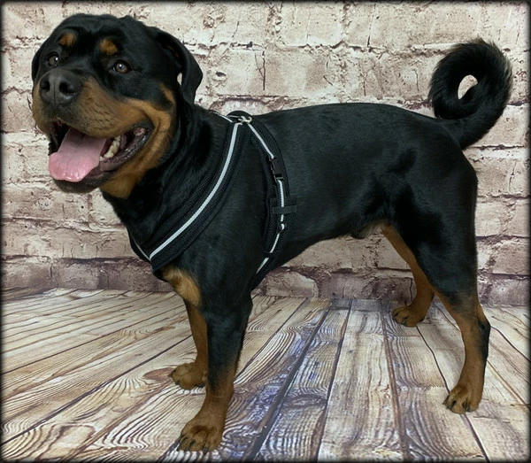 The Air Mesh Reflective Dog Body Harness was designed for all breeds of dogs. The Air Mesh Dog harness is a padded breathable easy to wear harness designed for comfort and security. This Dog harness works well for many dog activities such as jogging, no-pressure dog walking, puppy training, tracking scent work, fly ball, frisbee, biking, and agility just to mention a few.