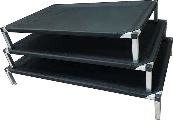 These Aluminum Raised Dog Beds are available in three sizes to accommodate many dogs sizes. All sizes have six inch leg supports to keep your dog off of the ground making them safe, comfortable and easy for older dogs to climb into.