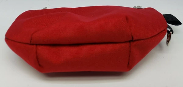 A zipper is located on the bags front top side so it is easy to access. The zipper has a long finger tab for comfortable operation and thumb tabs on both ends of the zipper making opening and closing the bag easy. The Service Dog Clip-On Small Bag comes in 13 colors and is a quality American made product.