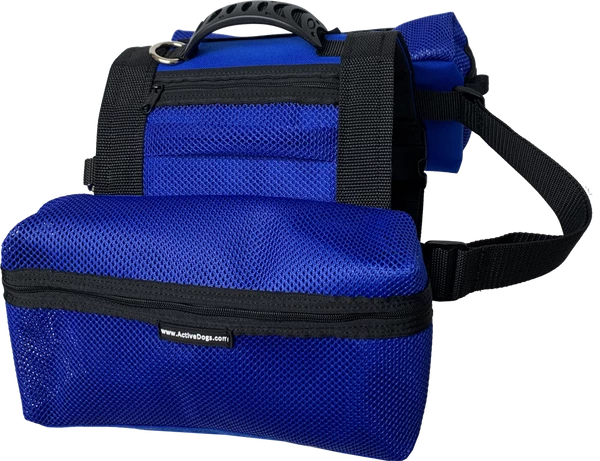 New redesigned features have been added to our Mesh Bag Vest Harness. This is a great harness style vest for carrying and transporting items that may hold moisture such as a dog water dish, water bottles, wet dog boots, towels, etc. This Mesh Bag Vest has two zippered side bags that have a solid back and bottom but, top, front and sides are constructed from a double layer mesh. This changed feature has strengthen the bags yet at the same time makes them easy to see into, light weight, and air can flow through the bags. The bags have dimensions of 3” Deep, 11” Wide and 6” Tall.