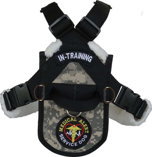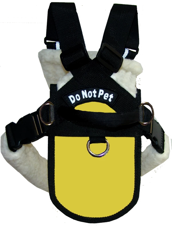 There is a non-restricting back plate on the harness top to place an identification patch. It is big enough to fit one of our specialty patches. The Pulling & Balance Harness comes with two rocker patches. One rocker patch for the front of the harness and the other for the top of the harness (patches shown in photos). Any specialty patches are an extra option.