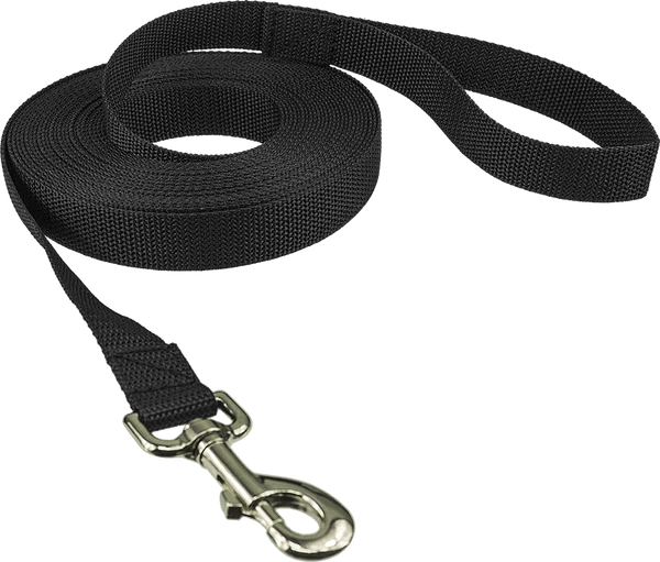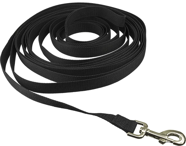 Schutzhund regulation 33′ tracking line made of heavy 1″ poly webbing and a quality, large eye bolt snap.