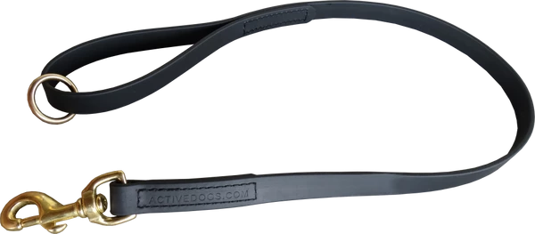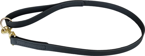 Our Tuff-Stuff Leash with O-Ring is made of 3/4″ wide black Brahma Webb and features a solid brass snap and durable stitching. Thre is a 1″ solid brass O-ring is floating in the handle loop so the leash can be used in a variety of ways.