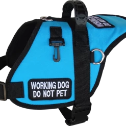 The vest is padded, lined and all the seams are cover bound. It comes with 4 standard patches of your choice. This vest also works well with the 3 snap reflective pulling leash – which is helpful for those with a wheelchair (leash item number is 707551PL).